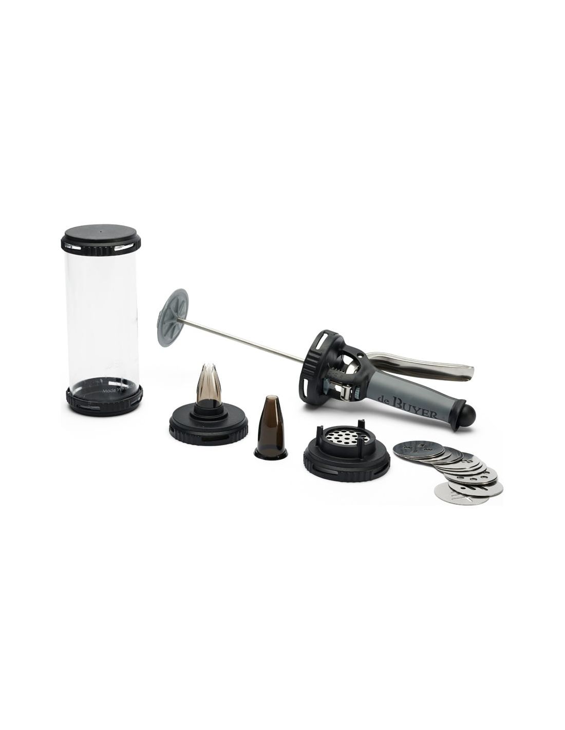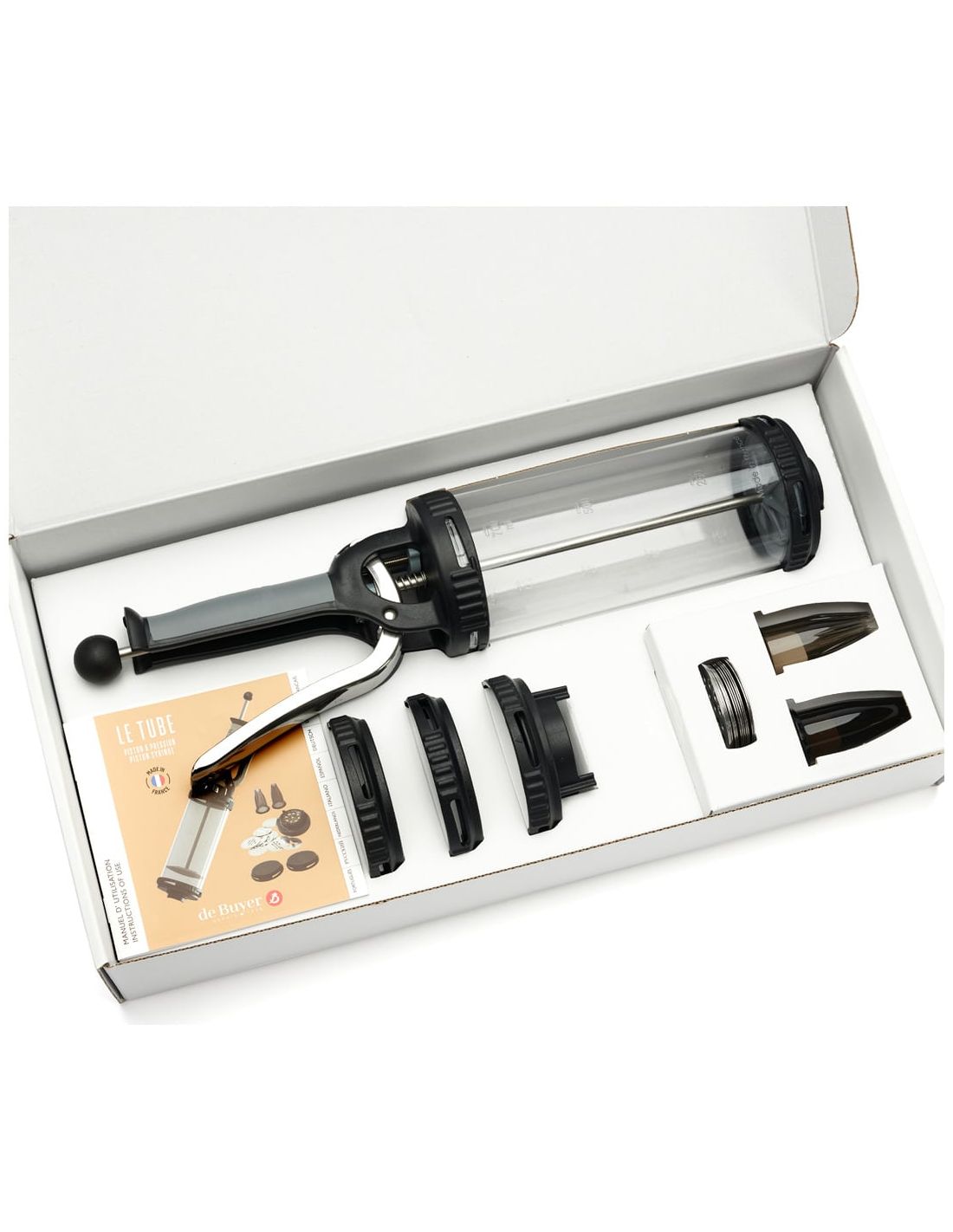 O de Buyer LE TUBE Pistão Doseador de Pastelaria com Kit de Biscoitos é um utensílio prático e preciso, pensado para dosar, rechear, decorar e moldar diferentes preparações com maior controlo do que um saco de pasteleiro tradicional. É ideal para trabalhar massas e preparações de textura mais espessa, como massa choux, cremes, mousses densas e massas para biscoitos, ajudando a obter resultados mais uniformes e um trabalho mais limpo e consistente.
