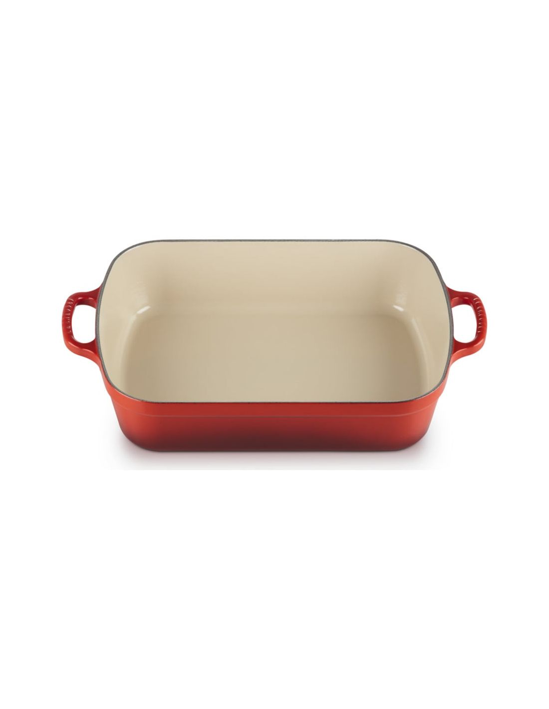 Tabuleiro retangular 33cm ferro fundido da Le Creuset. O tabuleiro retangular em ferro fundido é ideal para cozinhar verduras, carne, peixe e massas no forno. Também é indispensável para preparar lasanhas, gratinados, tartes e sobremesas deliciosas. Por ser um excelente condutor de calor, o ferro fundido é um dos melhores materiais para cozinhar. Além disso, a base e as paredes têm a mesma espessura, o que garante a absorção e distribuição uniforme do calor, sem pontos de sobreaquecimento. O resultado é que a comida não se queima nem fica crua no meio. A distribuição uniforme do calor por todo o utensílio faz ainda que os alimentos não percam o seu suco durante a cozedura, conservando assim todos os seus nutrientes e vitaminas. Versátil e prático: o seu espetacular design permitir-lhe-á servir os pratos diretamente do fogão para a mesa (e da mesa para a máquina de lavar a louça).