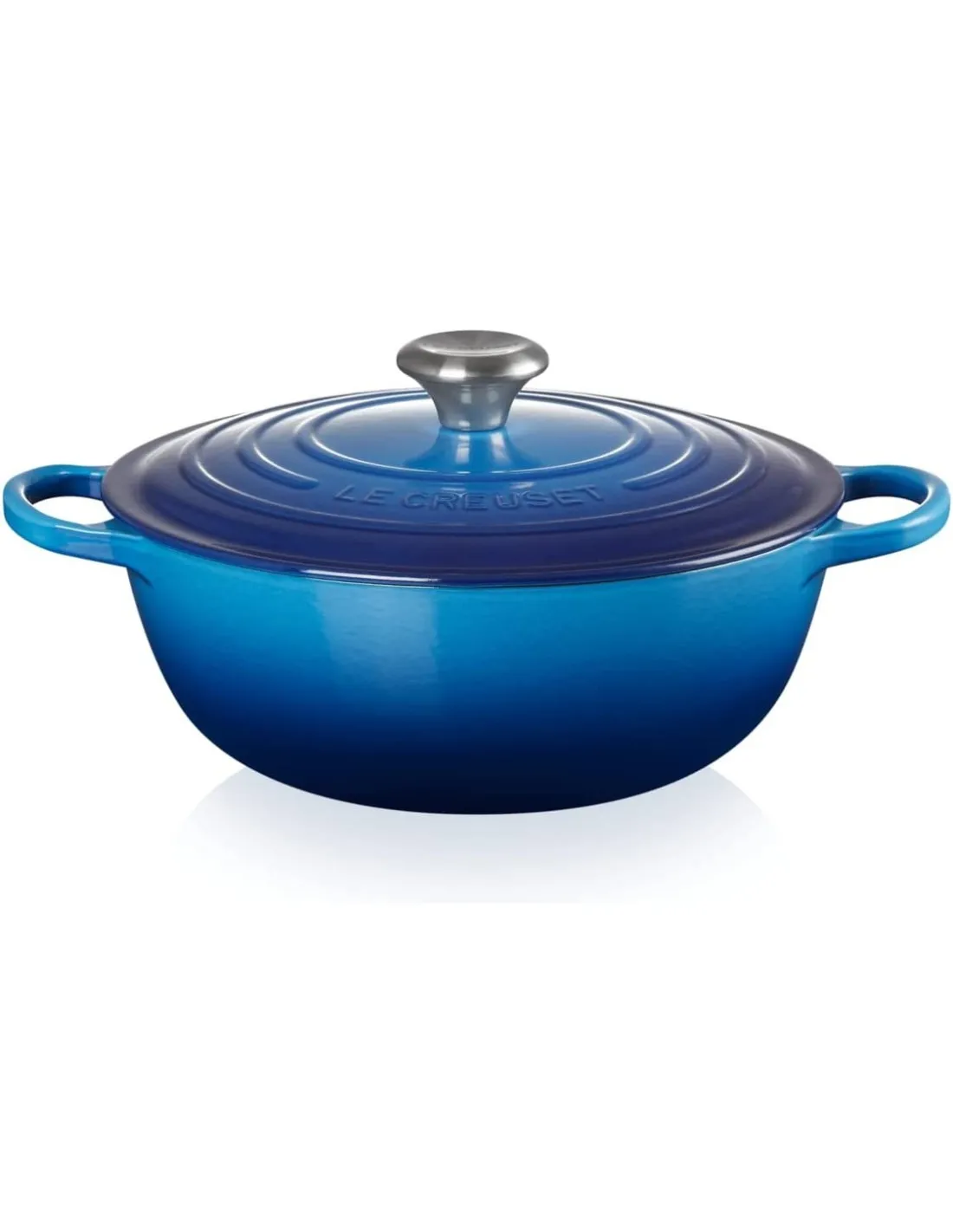 Tacho Marmita gourmet 32cm da Le Creuset. A nova Marmita Gourmet é a união da Cocotte redonda com a Panela baixa de ferro fundido. É um utensílio versátil e bem fácil de manusear. Polivalente e prática. Características do ferro fundido esmaltado: