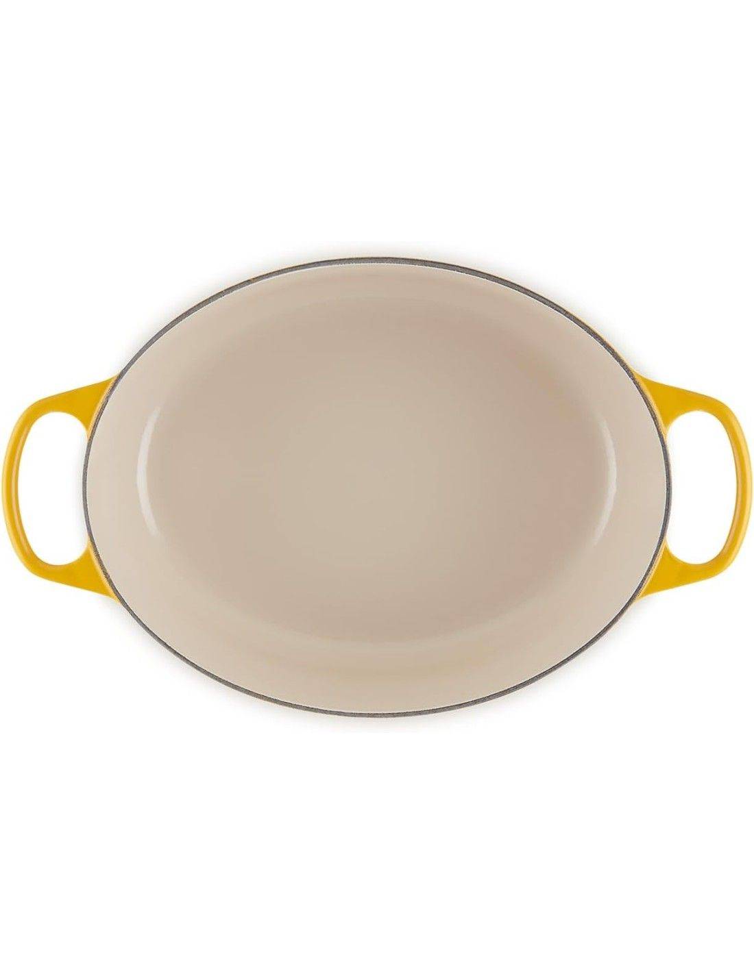 A cocotte Oval da Le Creuset de 31cm, é a companheira de culinária de cada dia deixando os pratos mais saborosos. A cocotte ovalada é ideal para cozinhar frango, borrego, vaca, porco, peru, rosbife, lombo, leitão, costelas, etc., tanto no fogão como no forno. É perfeita inclusivamente para levar ao forno tartes e bolos. Por ser um excelente condutor de calor, o ferro fundido é um dos melhores materiais para cozinhar. Além disso, a base, paredes e da tampa têm a mesma espessura, o que garante a absorção e distribuição uniforme do calor sem pontos quentes. A distribuição do calor uniforme em toda a cocotte não vai permitir a perda de molho durante a cozedura, preservando todos os seus nutrientes e vitaminas. Apto para todo o tipo de fonte de calor, incluindo indução.