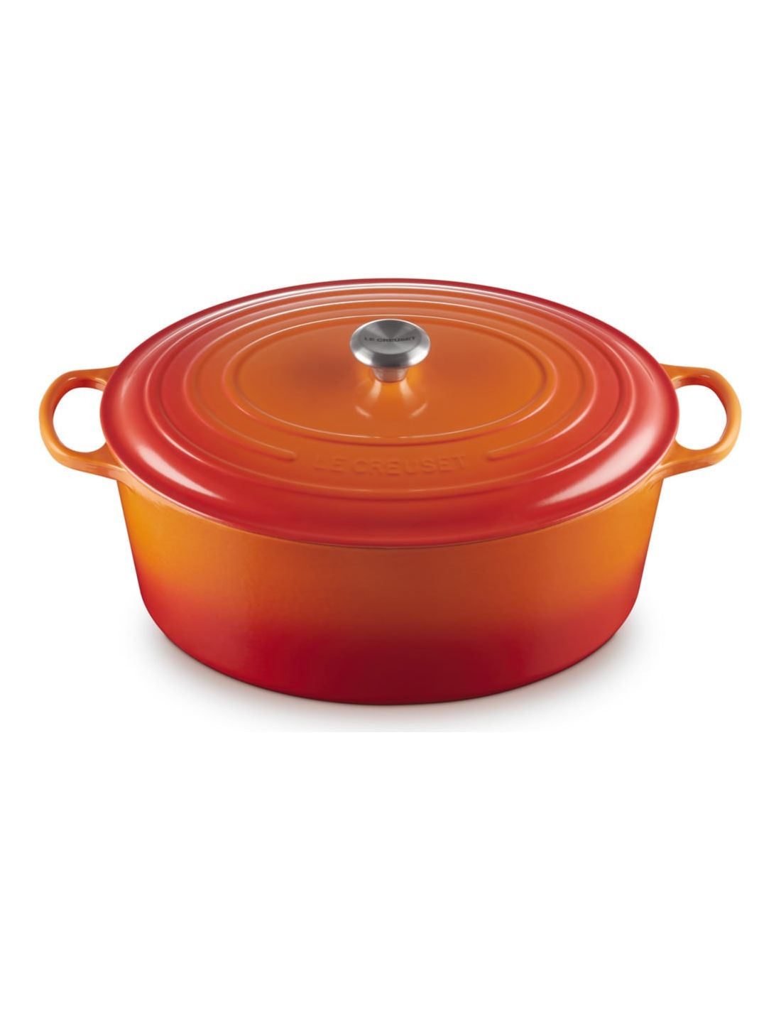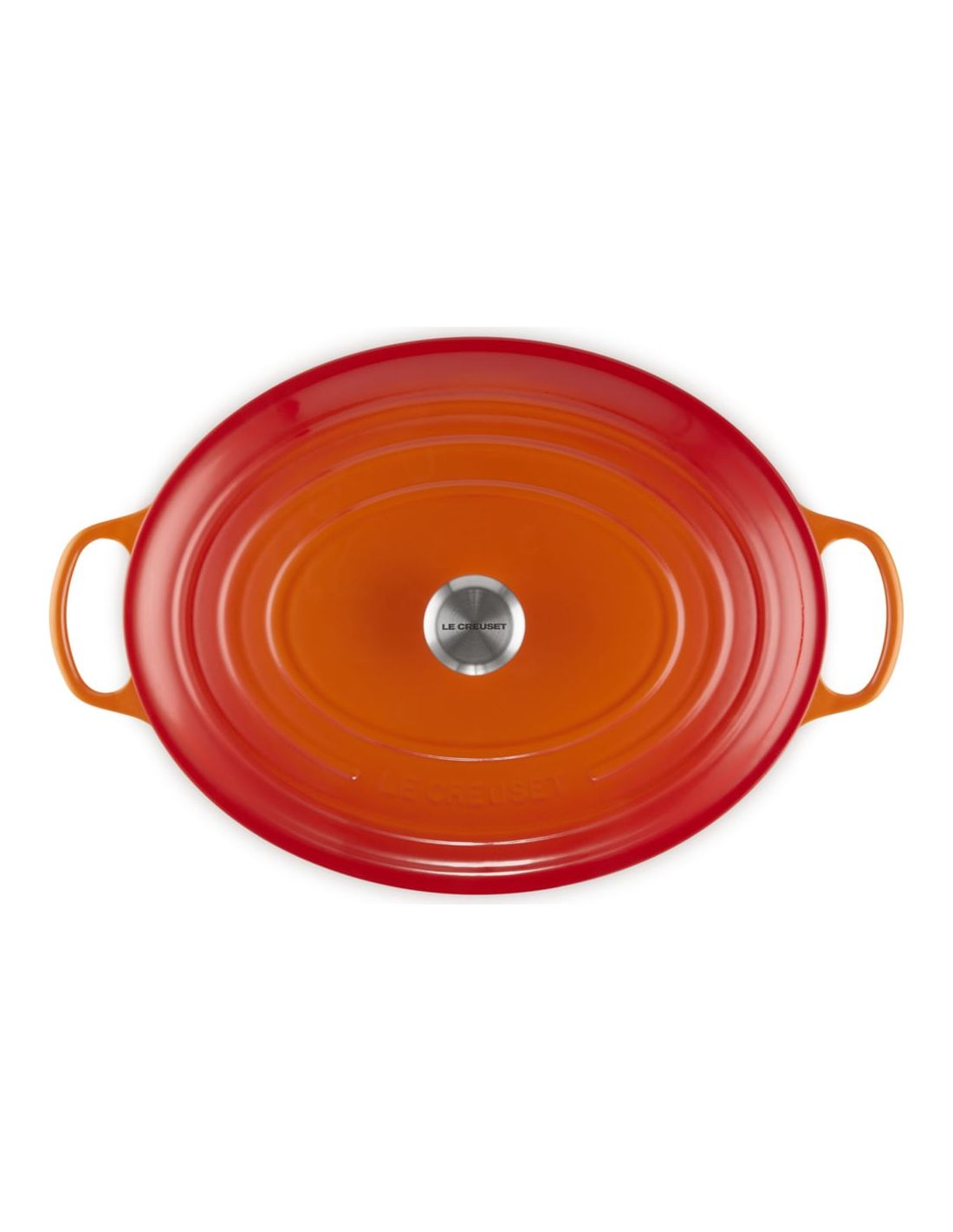 A cocotte Oval da Le Creuset de 40cm, é a companheira de culinária de cada dia deixando os pratos mais saborosos. A cocotte ovalada é ideal para cozinhar frango, borrego, vaca, porco, peru, rosbife, lombo, leitão, costelas, etc., tanto no fogão como no forno. É perfeita inclusivamente para levar ao forno tartes e bolos. Por ser um excelente condutor de calor, o ferro fundido é um dos melhores materiais para cozinhar. Além disso, a base, paredes e da tampa têm a mesma espessura, o que garante a absorção e distribuição uniforme do calor sem pontos quentes. A distribuição do calor uniforme em toda a cocotte não vai permitir a perda de molho durante a cozedura, preservando todos os seus nutrientes e vitaminas. Apto para todo o tipo de fonte de calor, incluindo indução.