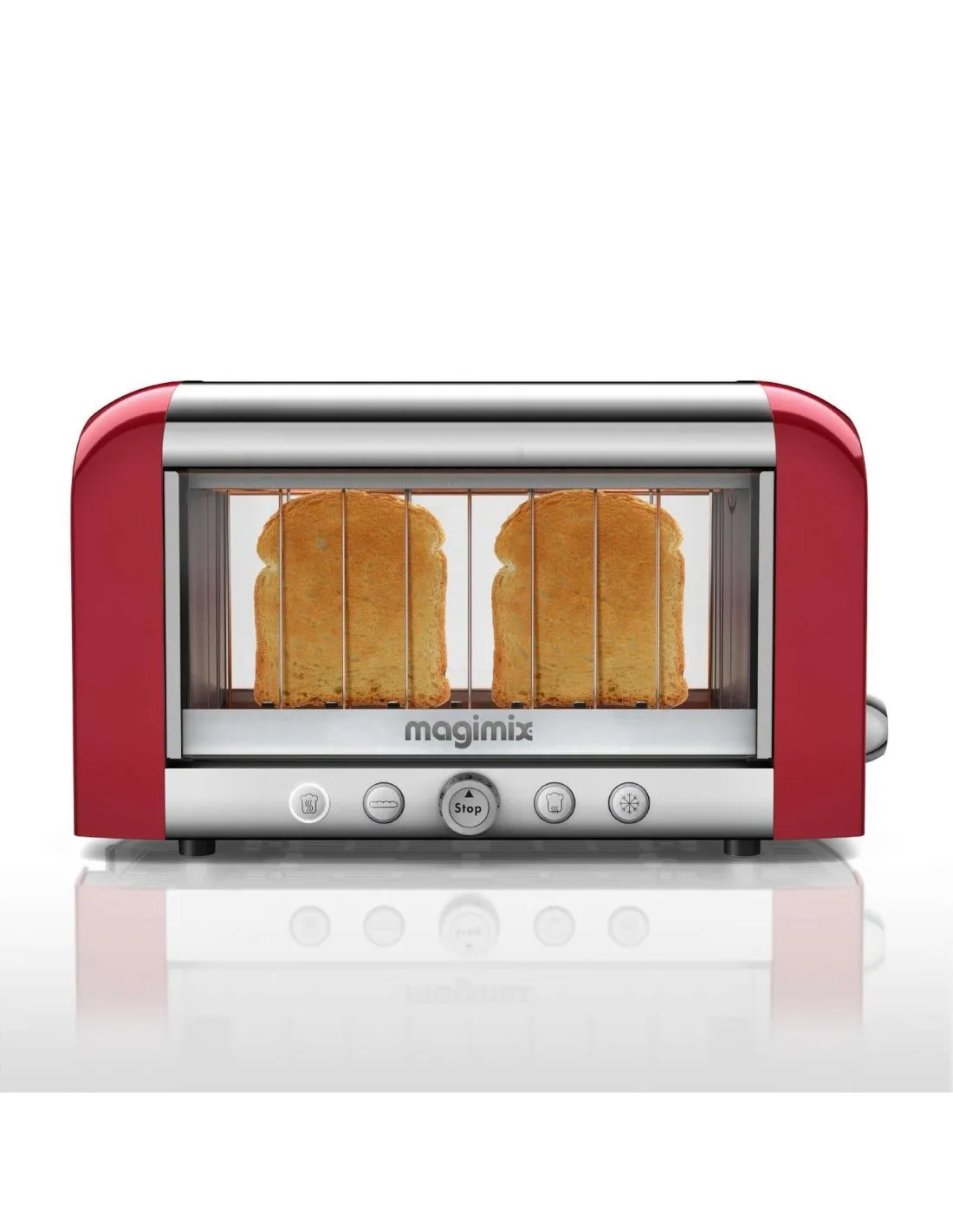 Torradeira Vision da Magimix aquece com resistências de quartzo de alta qualidade, por cima e debaixo do pão.