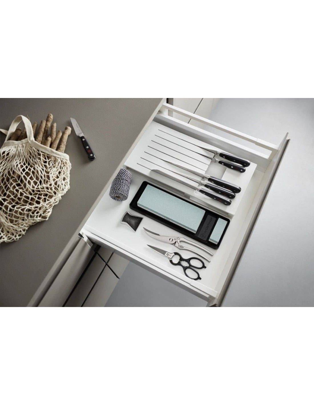 É compatível com todas as pedras de afiar Wüsthof e também com outras pedras de afiar comuns, sendo uma excelente escolha para quem procura uma solução estável, limpa e segura para o cuidado regular das lâminas.